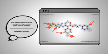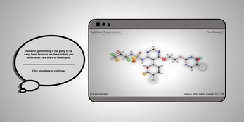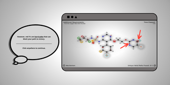 Originally conceived by Jia Jie Chen as a pharmaceutical pathfinding puzzle game, experience the exhilaration of exploring pharmaceutical molecules by alternating between meandering around barricades and looking for gateways while prancing from one atom to another to reach the other red target. However, be mindful of the resounding consequences behind your pathway strategy. With the 0.2.0 update onwards, get ready to venture deeper into the world of molecules beyond the pharmaceutical realm. Good luck, future ruler!